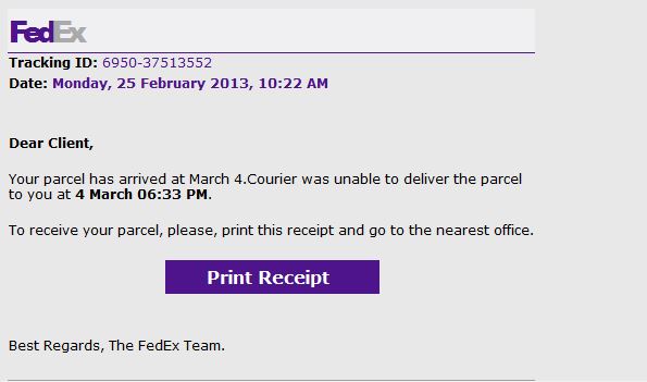 If you get these emails you can usually report them by going to the website of the company which is being spoofed and finding the spoof reporting email. In this case the offending email is a Fed Ex spoof and I have forwarded it to [email protected]