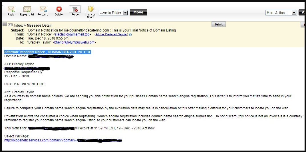 Read MoreOne of the more common scams today is something known as the "domain service" scam. This ...