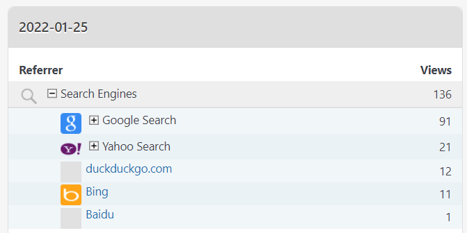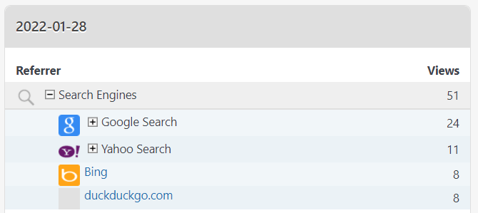 We are including the search results for a site which we manage below. This is a pretty typical daily result. You can see there are some search engines gaining ground on the Google dominance. Yahoo seems to be a making a strong comeback effort.