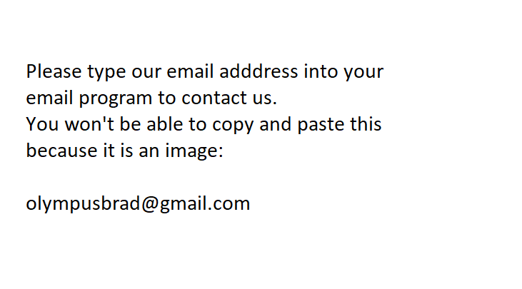 Example: olympusbrad (at) gmail.com
